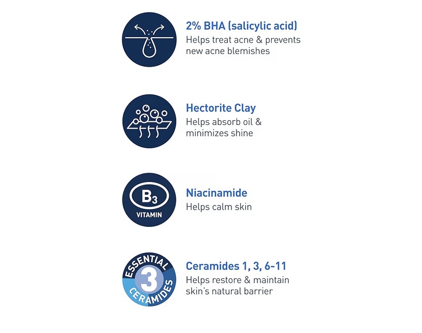 Developed with dermatologists, a gel-to-foam cleanser with 2% salicylic acid and purifying clay to remove dirt & excess oil, clean pores, gently exfoliate, and deeply reduce oiliness while helping to not disrupt the protective skin barrier or cause dryness and discomfort with 3 essential ceramides. Featuring Oil-Absorbing Technology to minimize visible shine. Formulated to clear acne, reduce blackheads, and improve the appearance of pores.