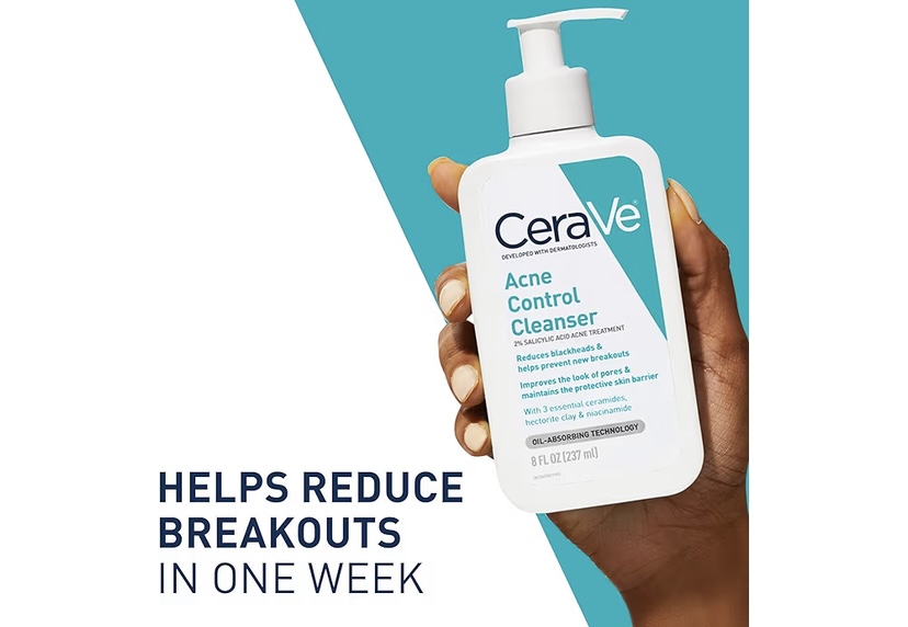 [ACNE WASH WITH OIL ABSORBING TECHNOLOGY] CeraVe Acne Control Cleanser helps prevent new breakouts from forming with purifying clay to help absorb excess oil and niacinamide to help calm skin. Fragrance free, paraben free, & non-comedogenic