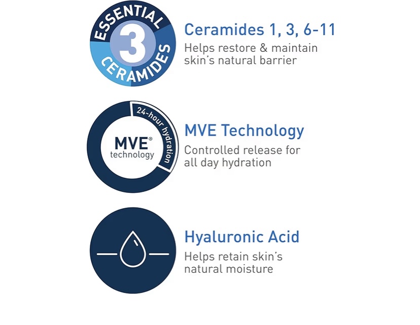 •MVE Technology: This patented delivery system continually releases moisturizing ingredients for 24-hour hydration