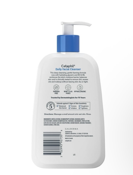 . CETAPHIL DAILY FACIAL CLEANSER: Reinforces the skin barrier, balances skin and minimizes the appearance of pores