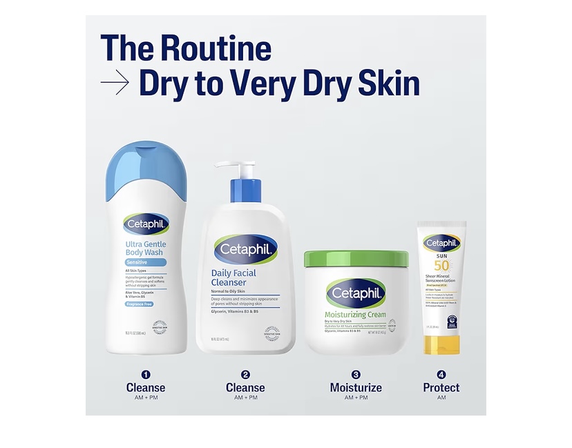 . CETAPHIL FACE & BODY MOISTURIZING CREAM FOR DRY TO VERY DRY SKIN: Instantly replenishes, intensely nourishes and soothes skin dryness for 48 hours
