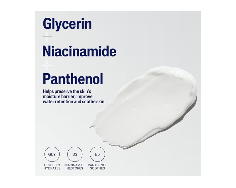 . DERMATOLOGIST BACKED INGREDIENT BLEND: With hydrating glycerin and skin essential vitamins B5 (panthenol) and B3 (niacinamide)