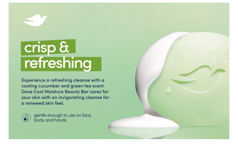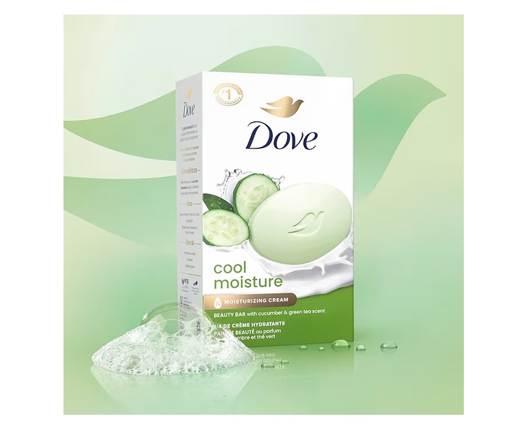 CRISP & REFRESHING: Dove Cool Moisture Beauty Bar with cucumber & green tea gives a cooling cleanse while caring for your skin