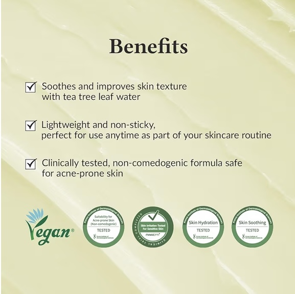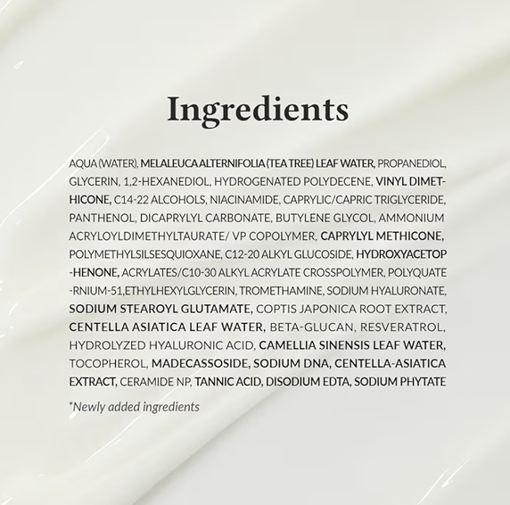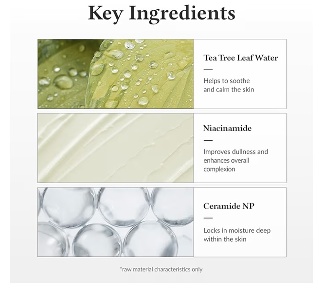 . 5 SOOTHING INGREDIENTS : Care for sensitive skin and red blemishes caused by external factors with Tea Tree Leaf Water and Madecassoside. These calming ingredients can quickly help soothe your skin effectively by providing moisture.