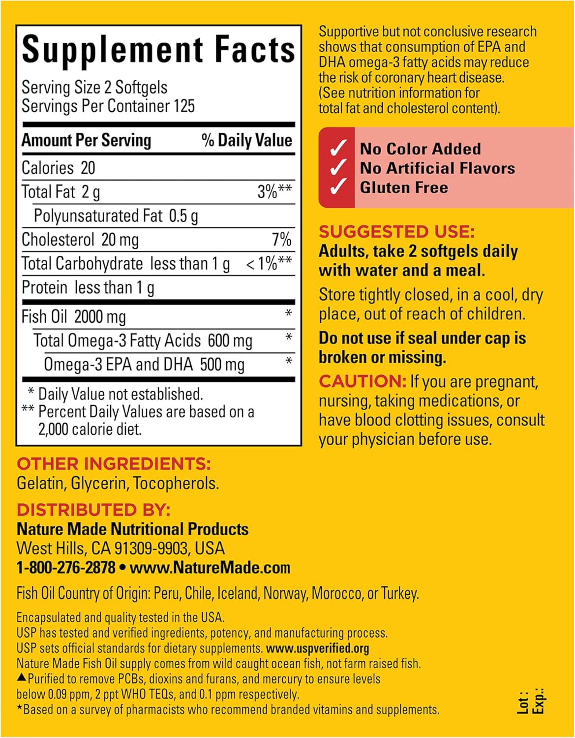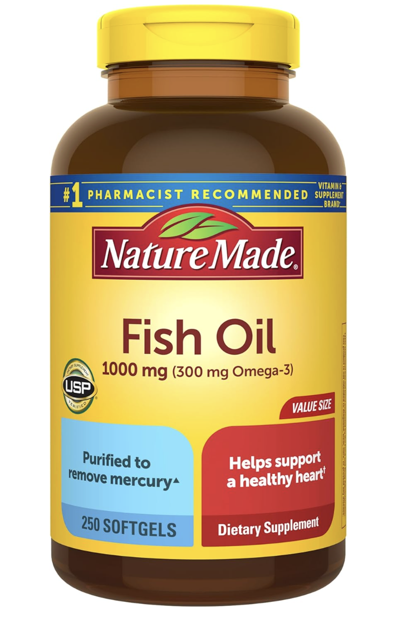 1000mg Softgels, Omega 3 Fish Oil for Healthy Heart Support, 250 Softgels, 125 Day Supply.