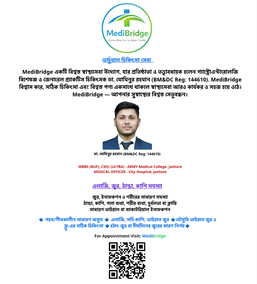 1. হঠাৎ জ্বর বা দীর্ঘদিনের জ্বরের কারণ নির্ণয়