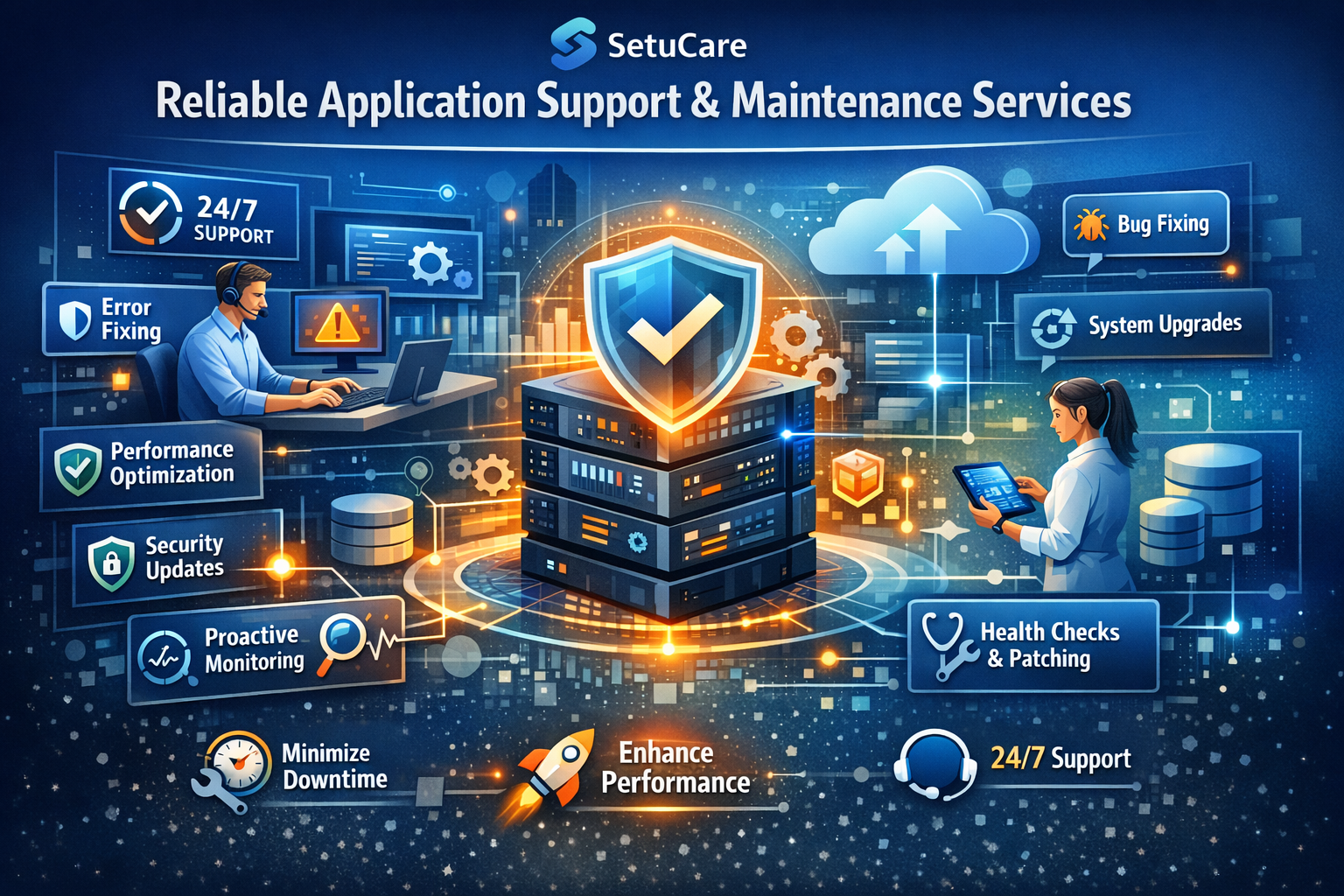 At SetuCare, we believe in long-term partnerships. We don’t just maintain your application—we continuously optimize and evolve it to align with your business goals. Whether you need ongoing support, emergency fixes, or system upgrades, our team is always ready to assist you with fast response times and professional service.