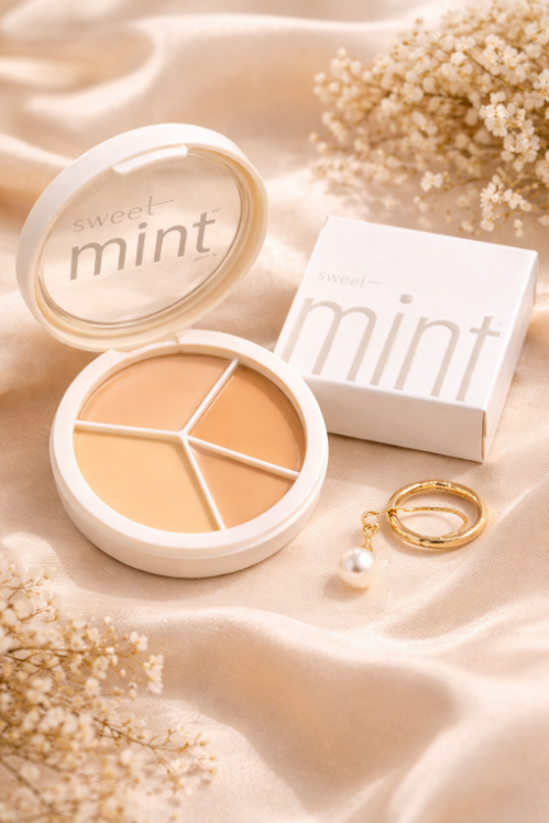 It’s a color-correcting concealer palette — not just hiding, but fixing skin tone before makeup.