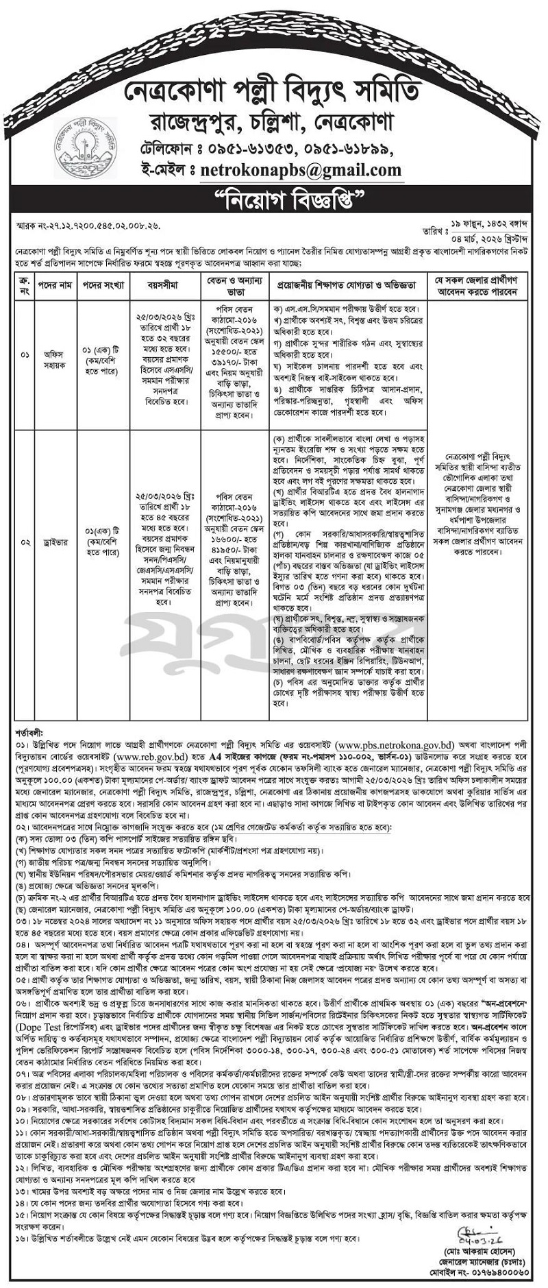 নেত্রকোনা পল্লী বিদ্যুৎ সমিতি - এ নিয়োগ বিজ্ঞপ্তি প্রকাশিত হয়েছে। বিস্তারিত তথ্য জানতে সংযুক্ত ছবিটি মনোযোগ দিয়ে পড়ুন।