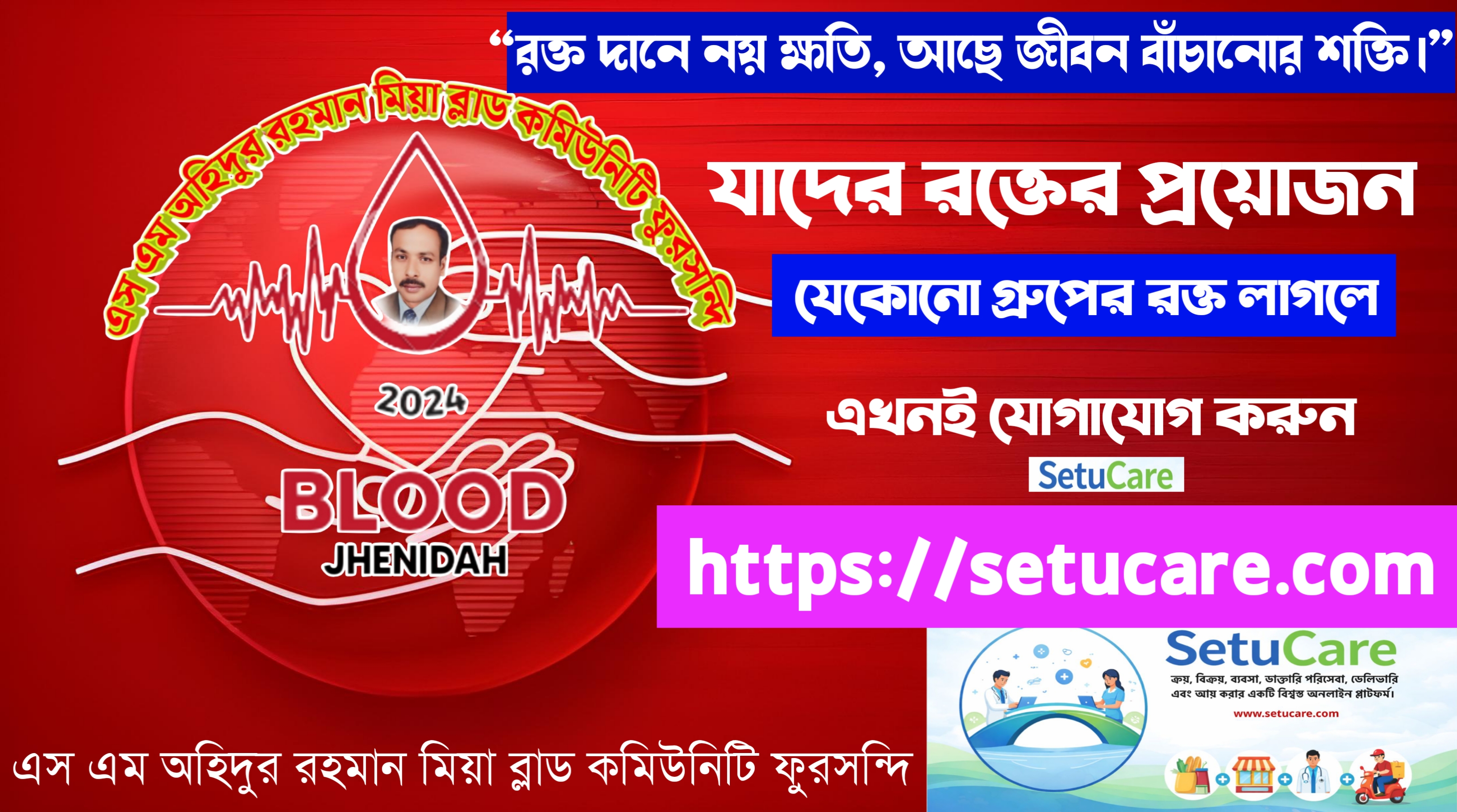 যেকোনো গ্রুপের রক্ত লাগলে যোগাযোগ করতে পারেন https://setucare.com/