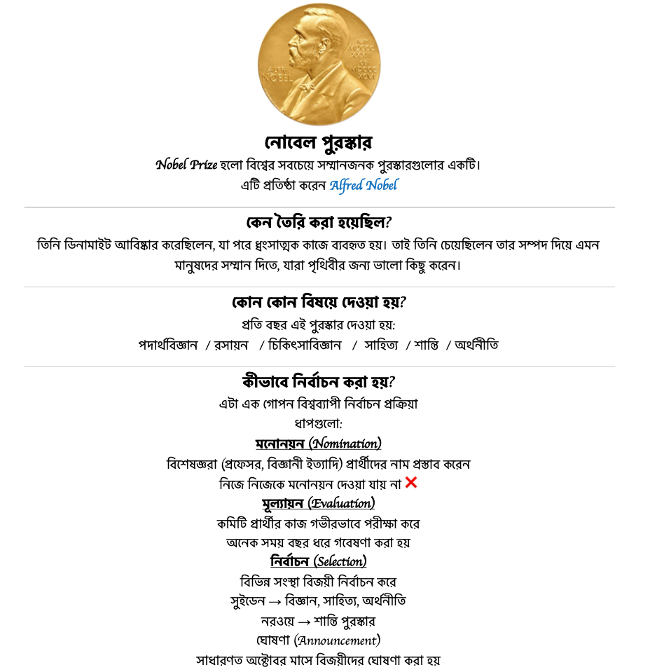 Nobel Prizeহলো বিশ্বের সবচেয়ে সম্মানজনক পুরস্কারগুলোর একটি।