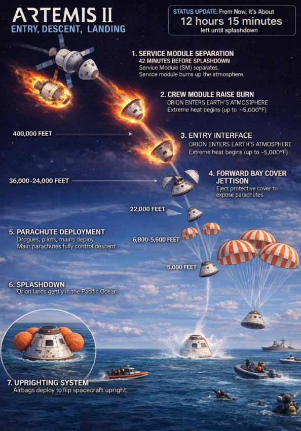 ৪. পৃথিবীতে ফেরা - উচ্চ গতিতে ফিরে এসে সমুদ্রে অবতরণ করবে